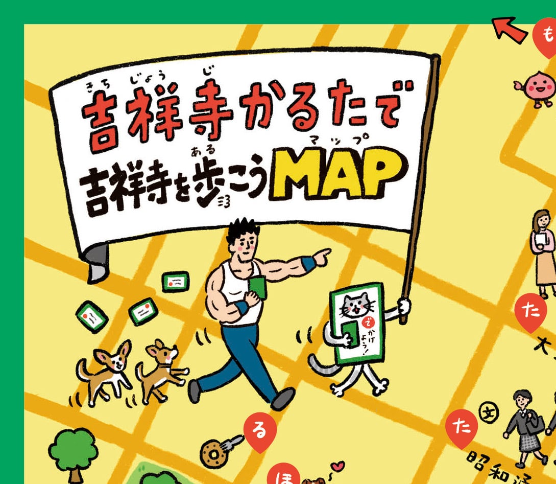 『吉祥寺かるた』に登場するスポットを実際に巡ることができる、特製の街歩きマップです。